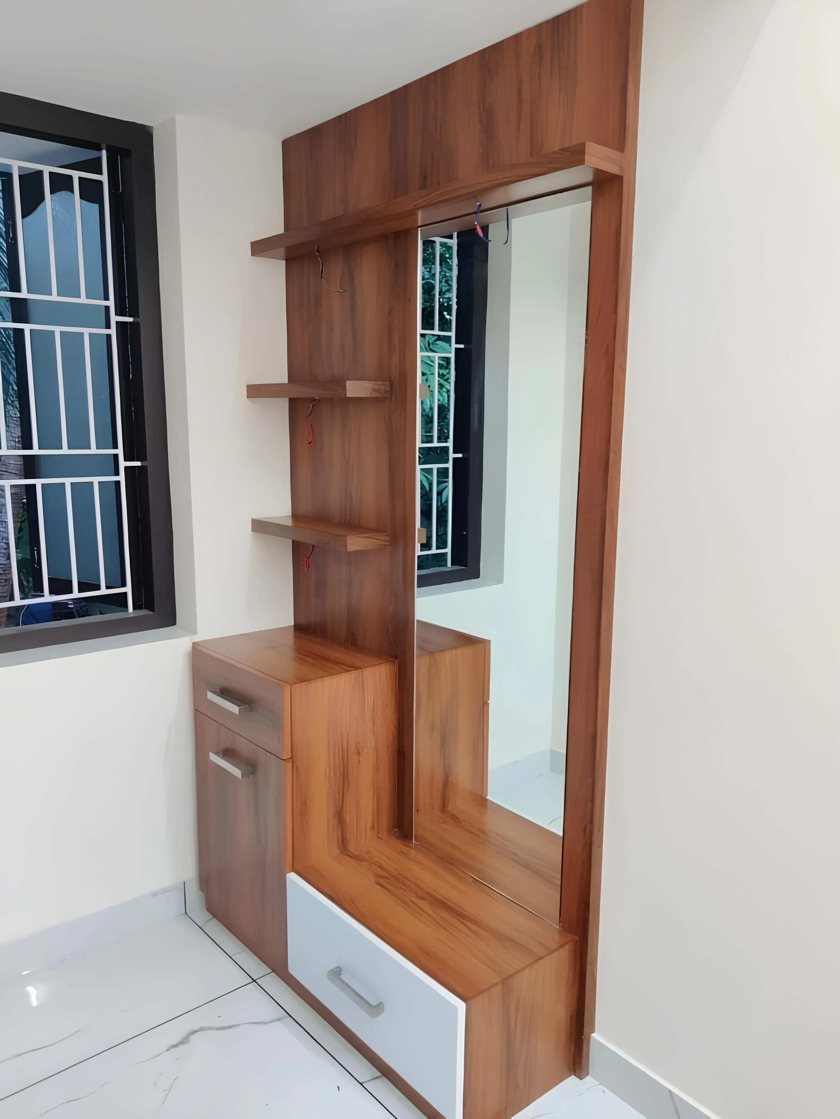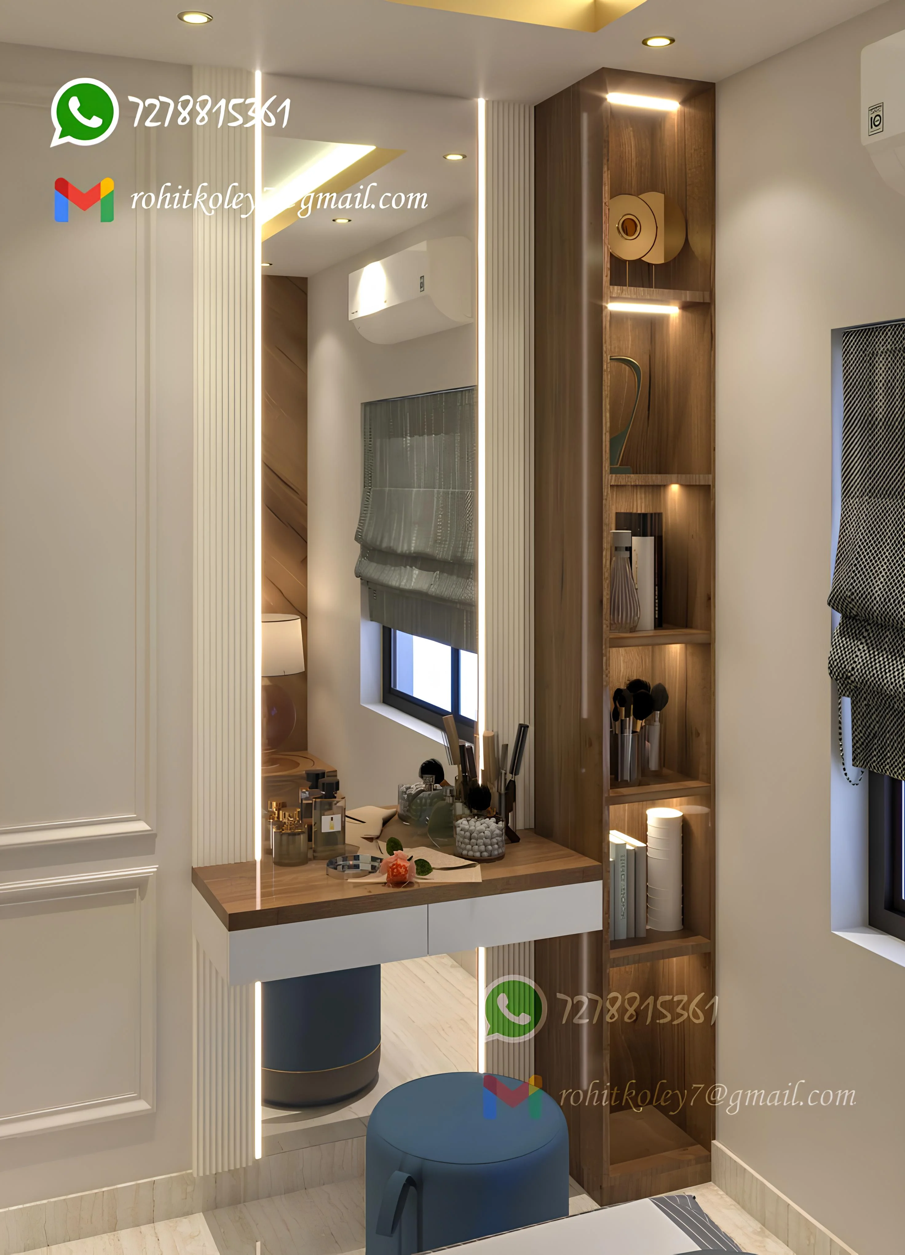 Bniture Wooden Dressing Table for Bedroom with 2 Drawer, Mirror and Huge Storage Space | Long Dresser Vanity Table with Mirror.